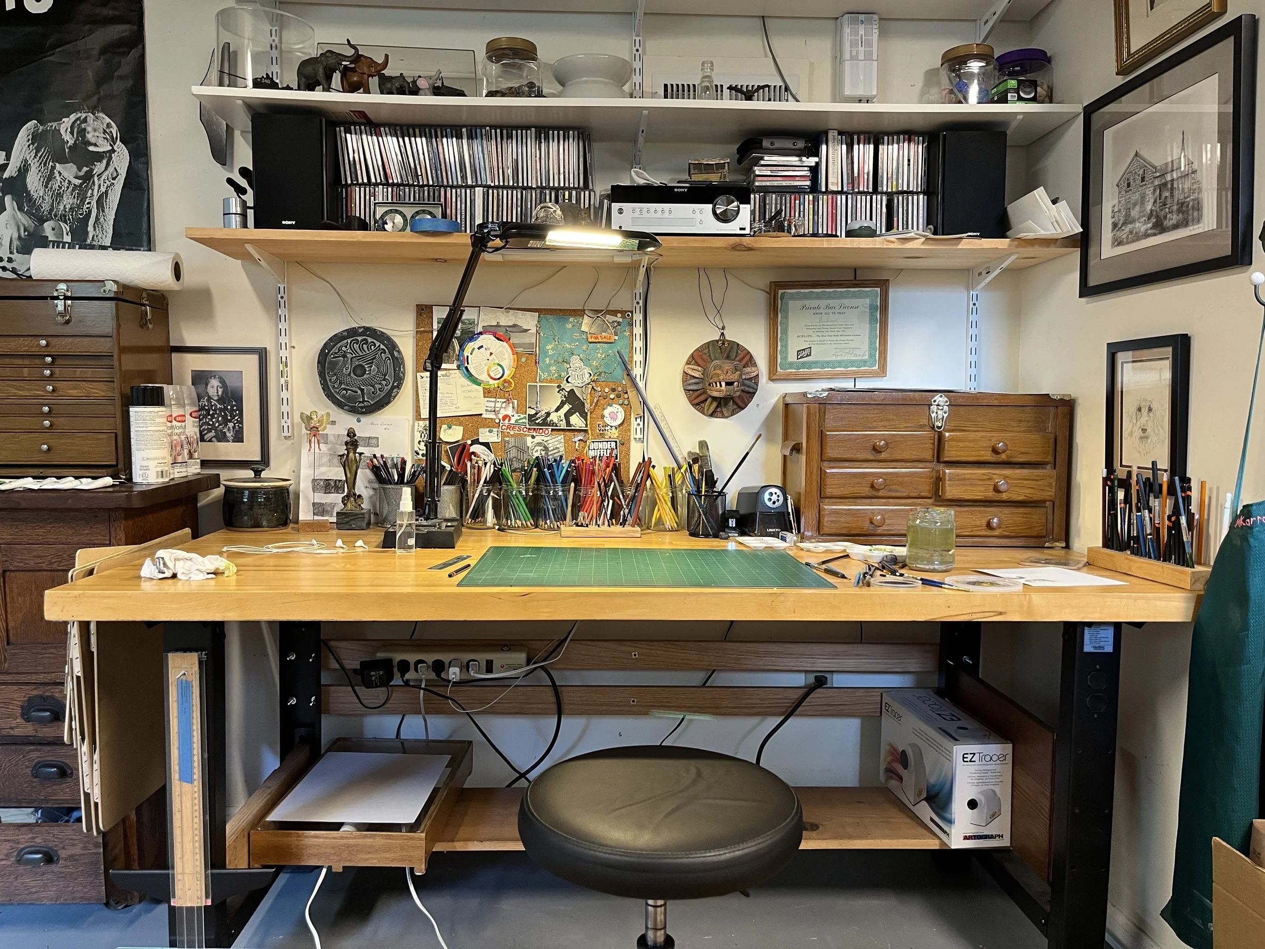 He draws inspiration from a wide range of subject matter, including nature and landscapes, architecture, and, most recently, animal and human portraiture. A life-long learner, he enjoys experimenting with new styles and mediums, though he is most drawn to graphite and charcoal for the sense of peace they offer during the creative process.